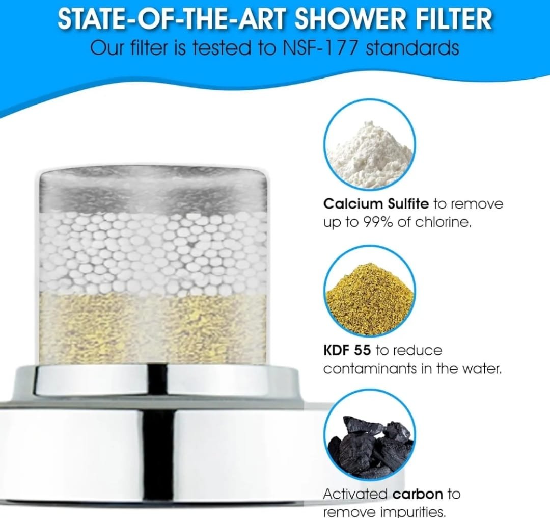 15-stage shower head filter is a premium wellness product that fits perfectly into your Thirst H2O line — especially for customers concerned about skin, hair, and water quality.
